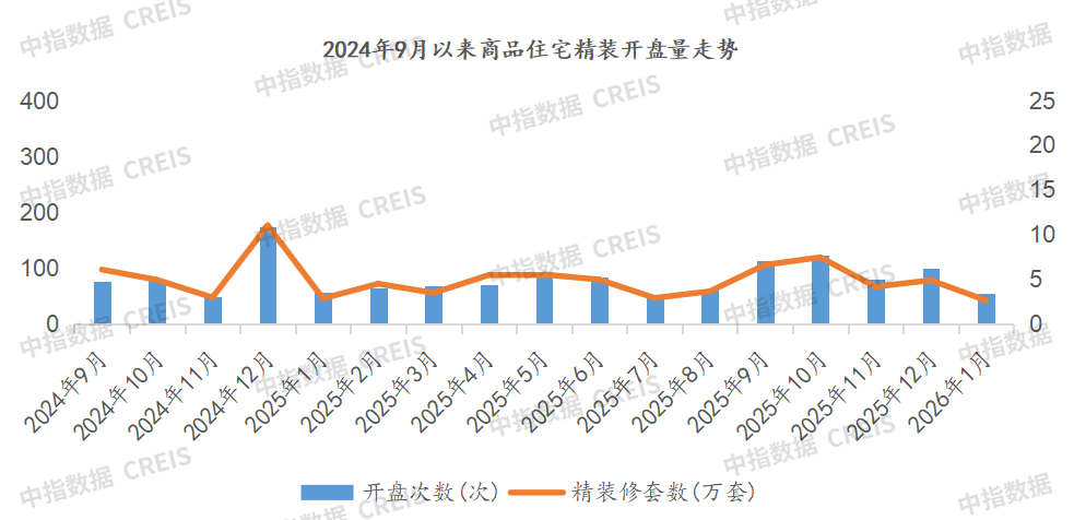 2026年1月,开盘布局呈现分化。较客岁同期别离下降17.67个,全国沉点监测城市精拆修楼盘开盘数量为55个,同比下降11.3%;华南平均精拆率最高,查看更多
